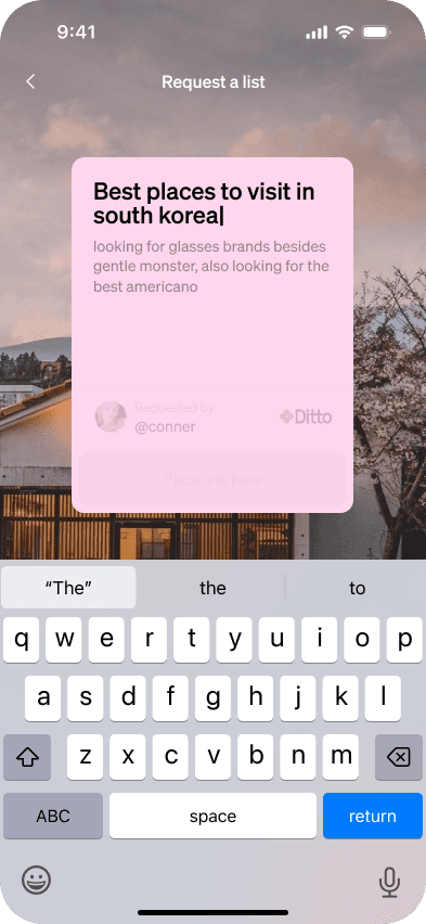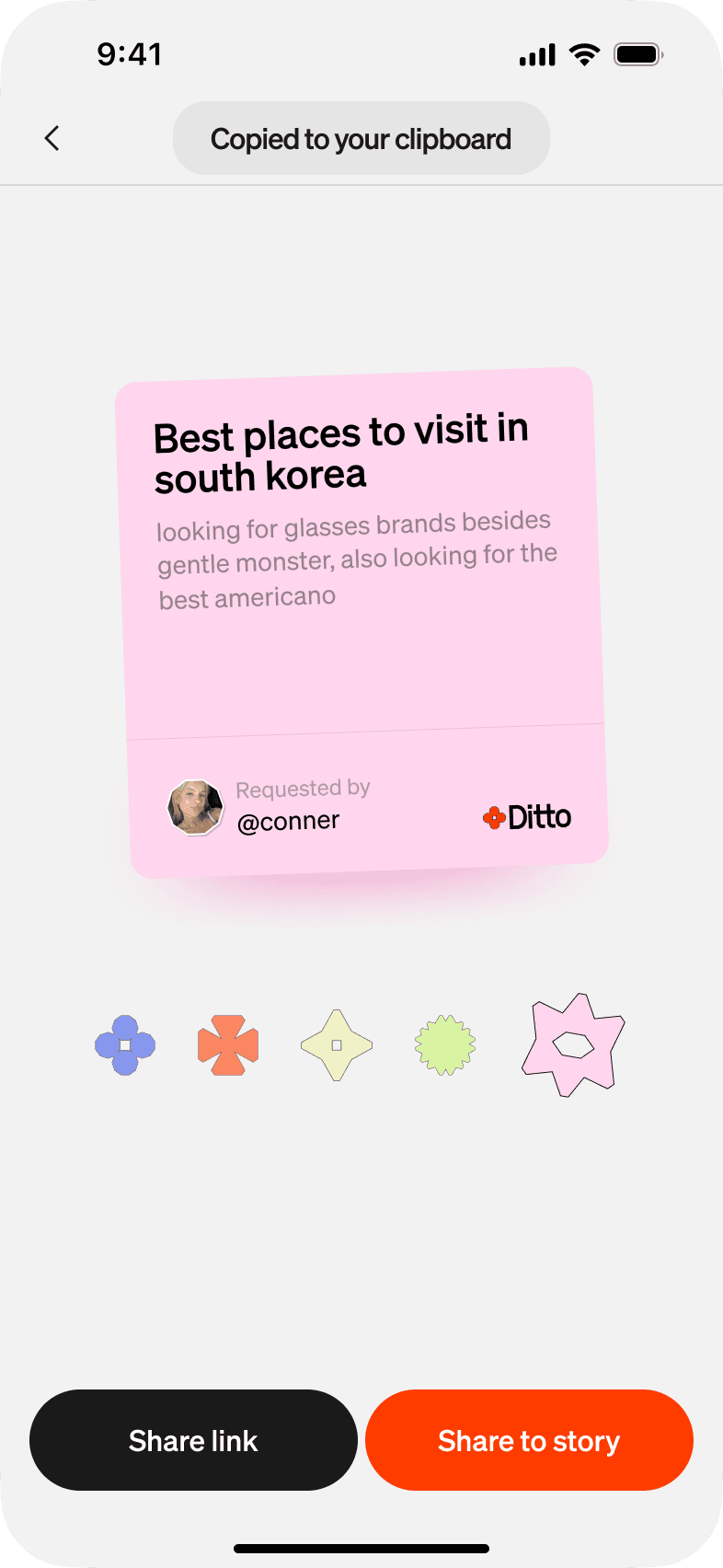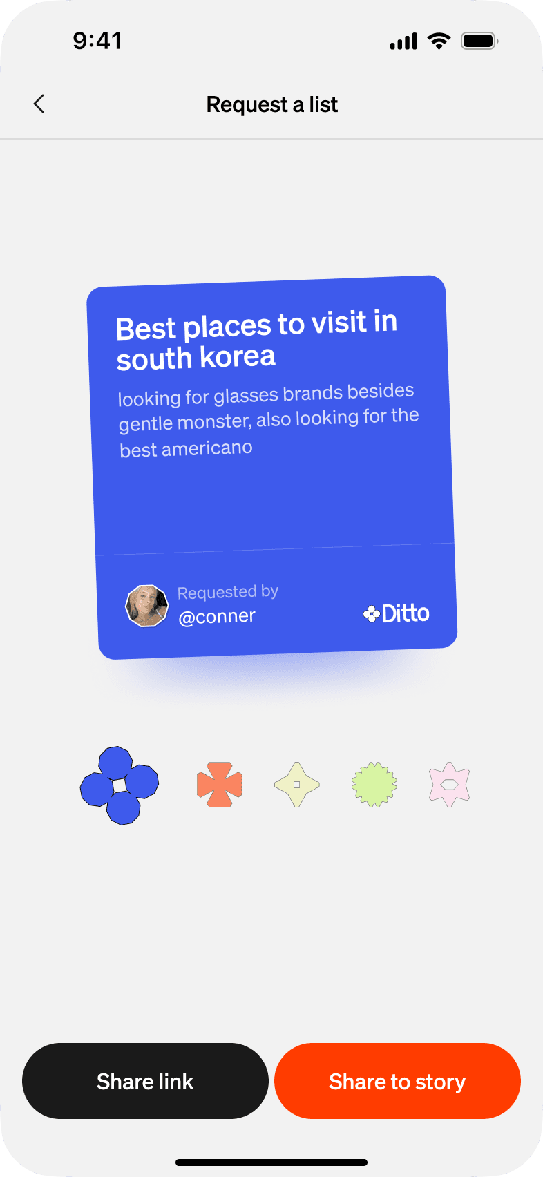 Ditto is a collaborative list-making app that helps friends rant, organize, and share their lives in one shared space. Users can create dynamic lists for anything — hot takes, goals, ideas — and interact with them. I worked with the founders + engineers to help create these features, currently live in production