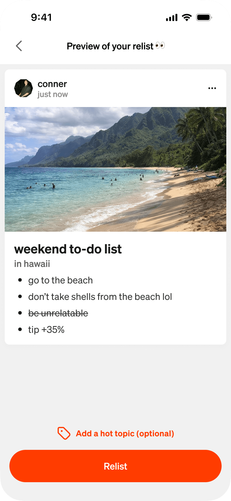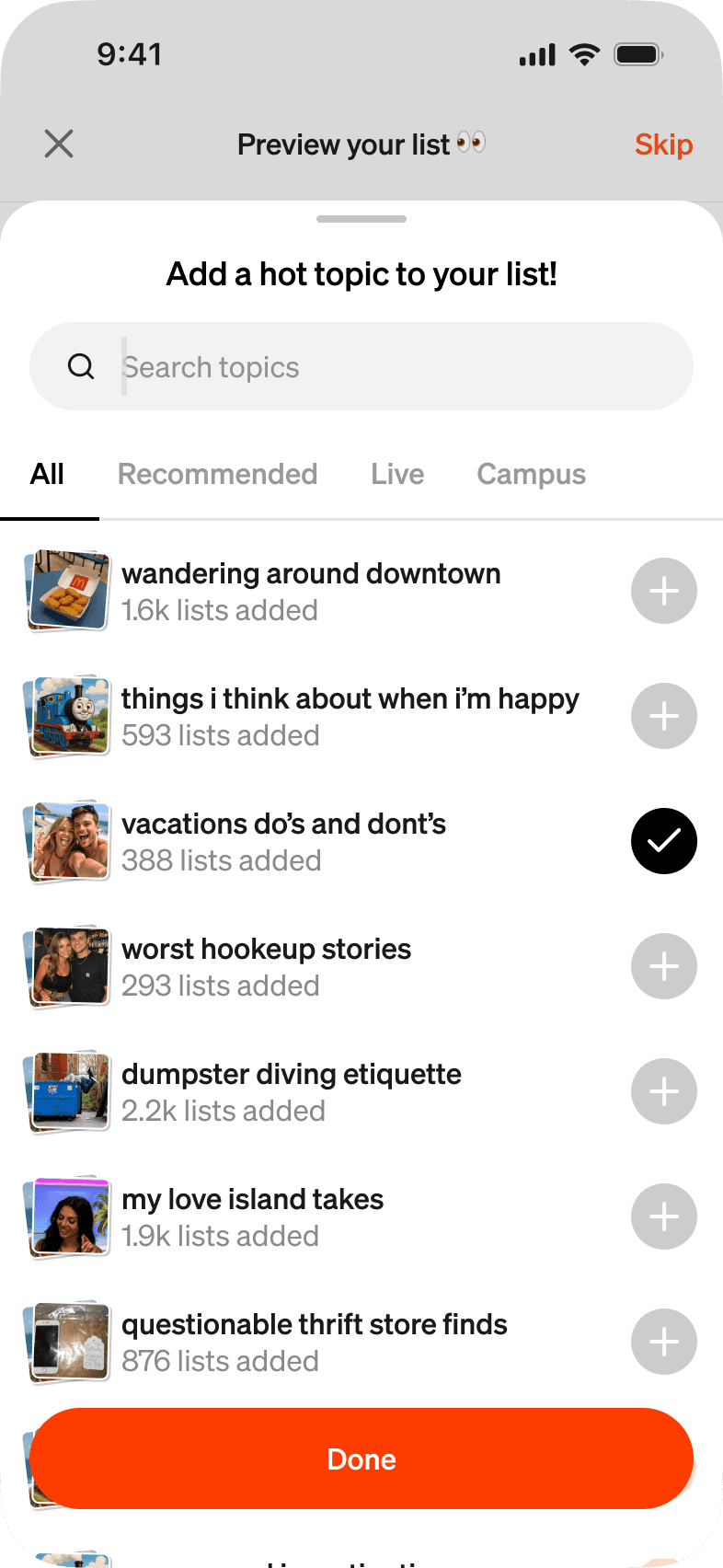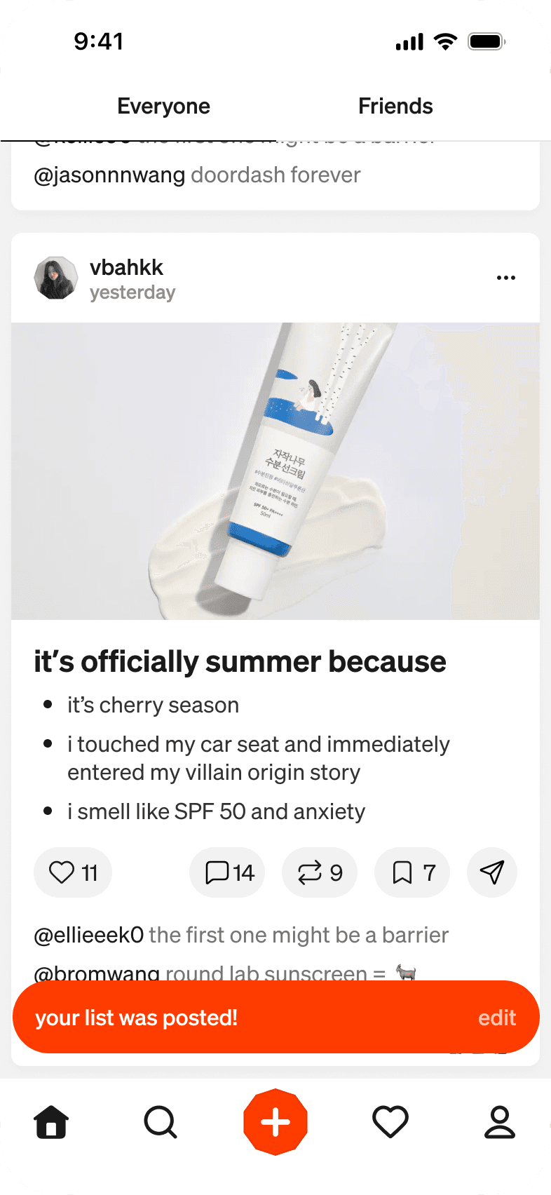 Ditto is a collaborative list-making app that helps friends rant, organize, and share their lives in one shared space. Users can create dynamic lists for anything — hot takes, goals, ideas — and interact with them. I worked with the founders + engineers to help create these features, currently live in production